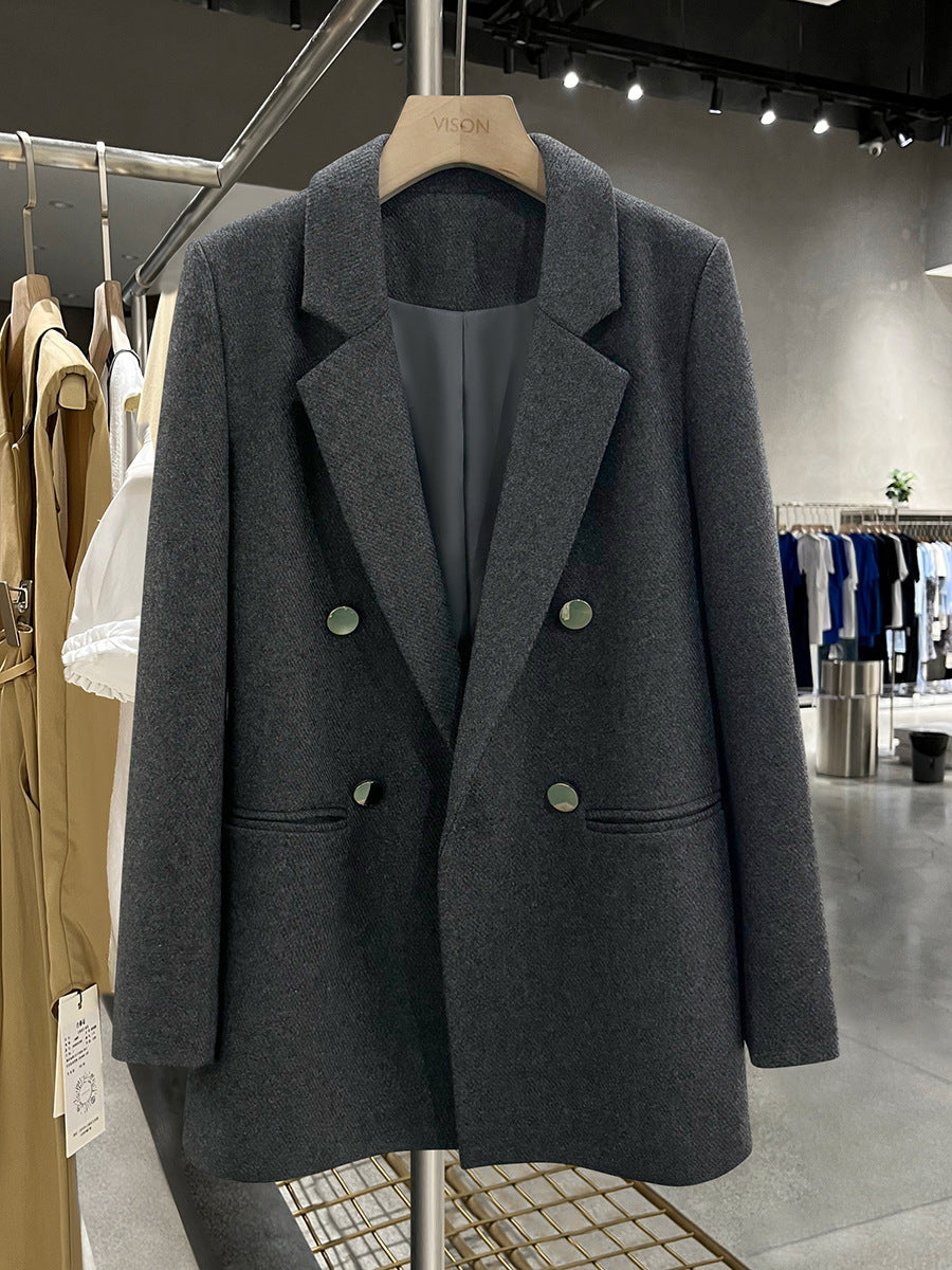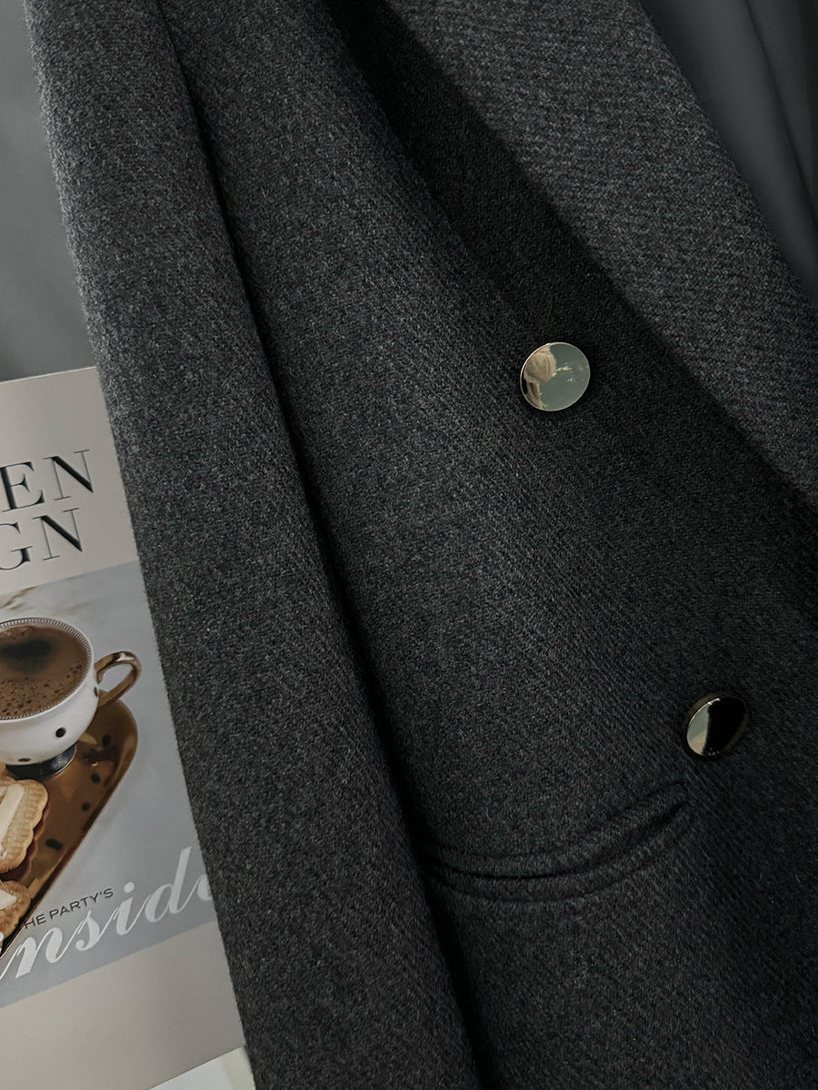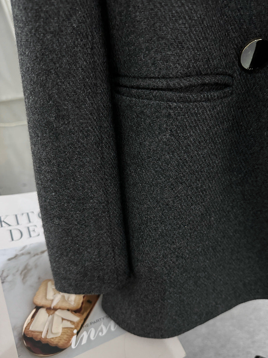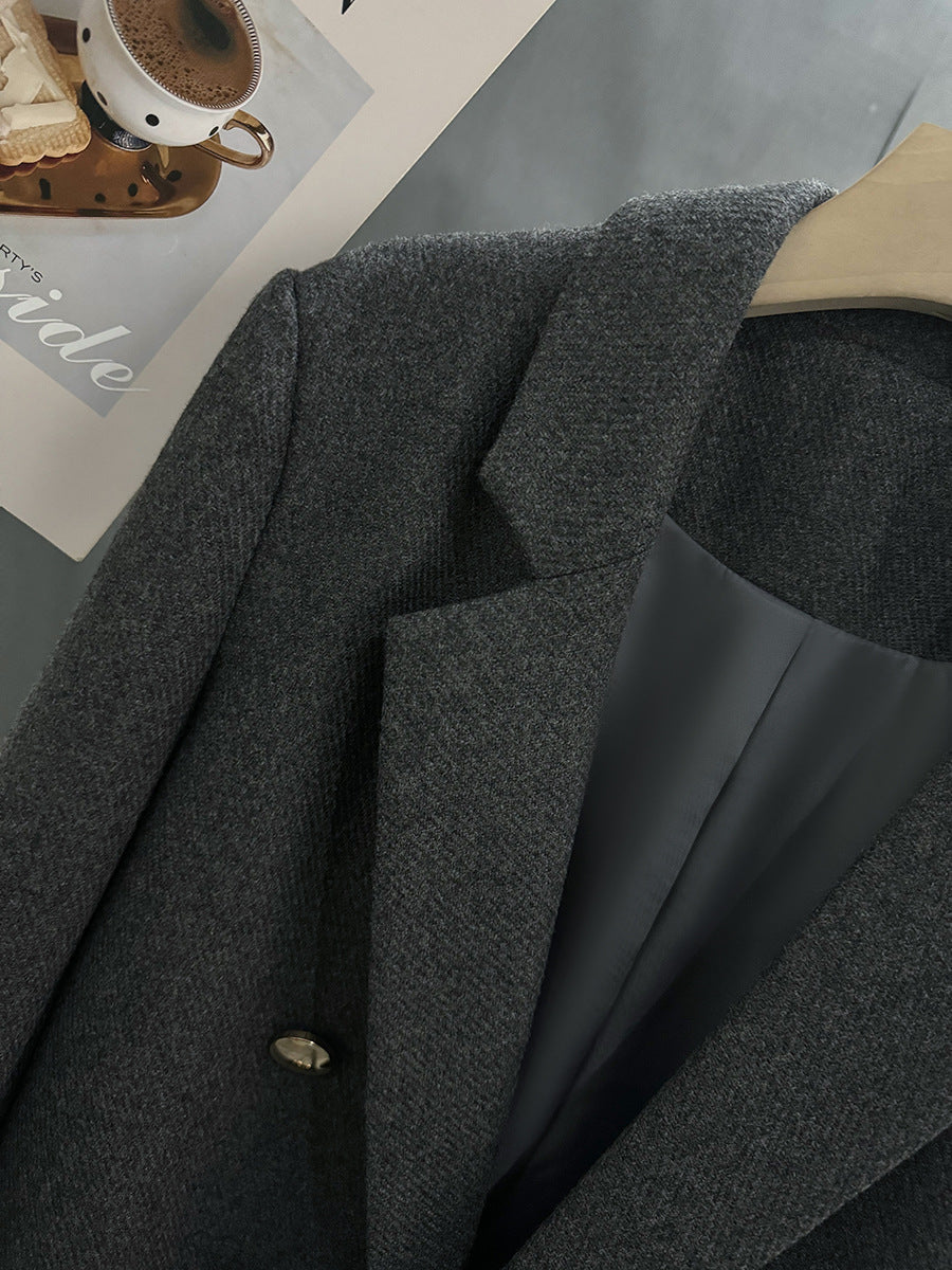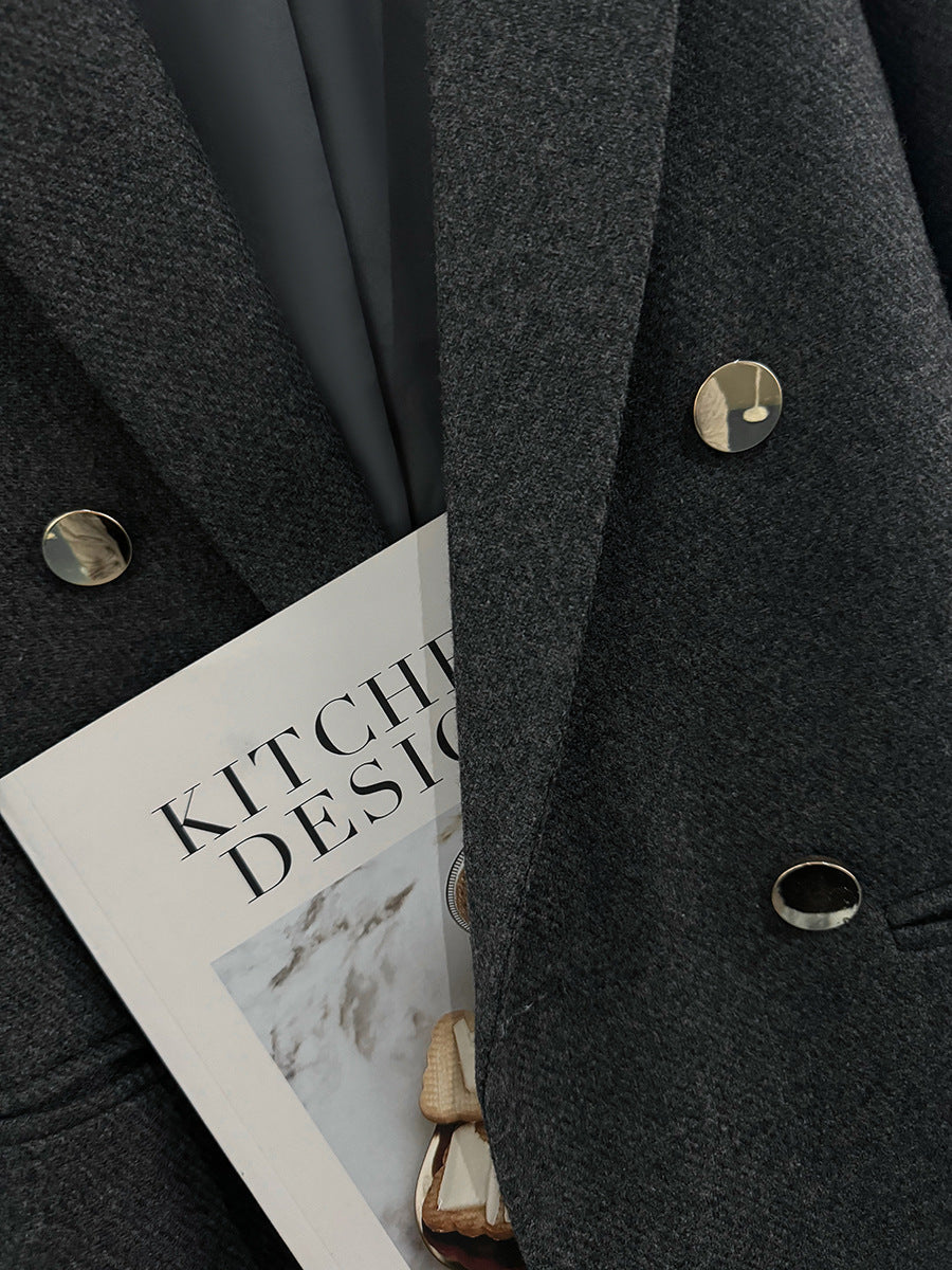 Gri Yün Dokulu Düğmeli Ceket