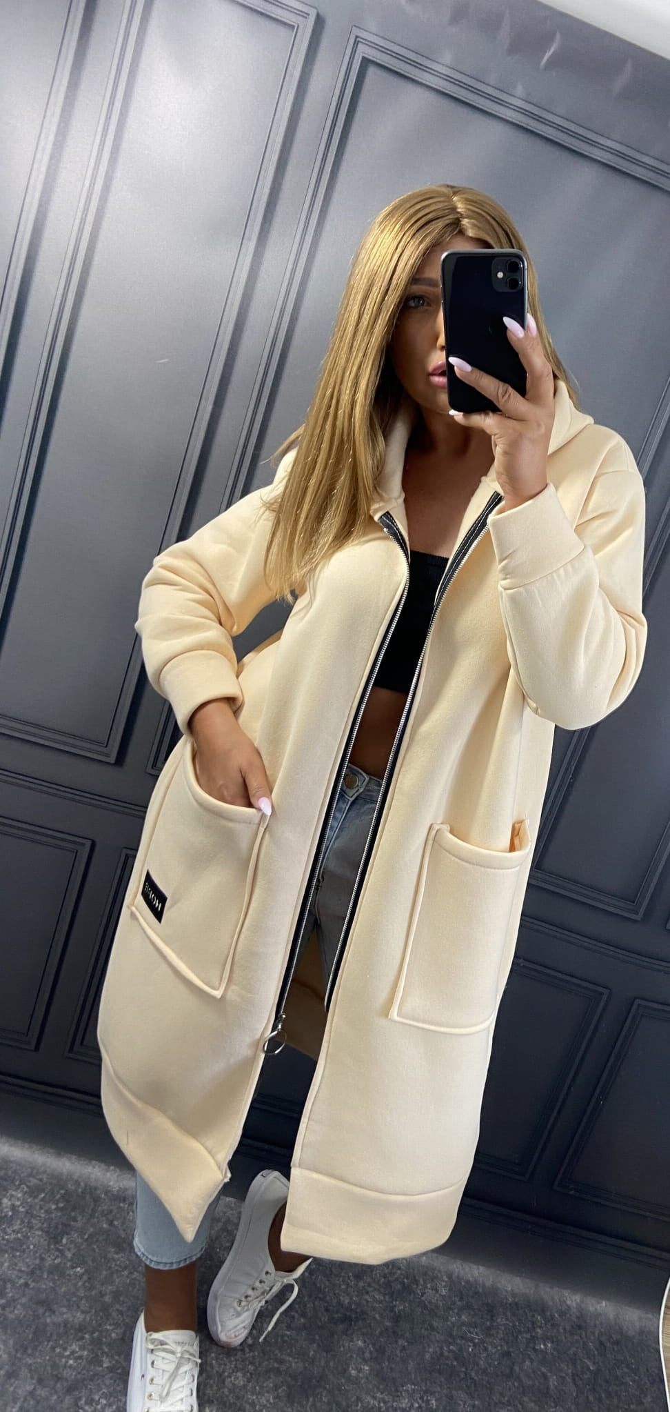Sıcak ve rahat bir stil arayanlar için mükemmel bir parça. Bu uzun sweatshirt ceket, hem kapüşonu hem de fermuarlı tasarımıyla günlük stilinizi bir üst seviyeye taşıyor. Yumuşak ve kalın kumaşı, serin havalarda sizi sıcak tutarken, rahat kesimiyle gün boyu konfor sağlar.